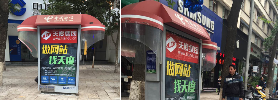 天度集團(tuán)在昆明市滇池路、金碧路、人民中路、北京路、青年路、西昌路等所有市基地骨干道路投入了路牌燈箱廣告。