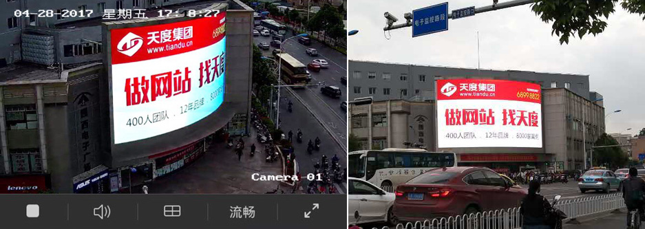 2017年4月28日,天度集團(tuán)在昆明市一二一大街(園西電子廣場(chǎng))投放的253平米超大LED戶外廣告上線。