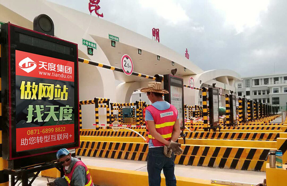 2017年8月21日,天度集團(tuán)投入巨資,在全國(guó)較大的收費(fèi)站“新昆玉收費(fèi)站”投入的35個(gè)雙向收費(fèi)口廣告上線。