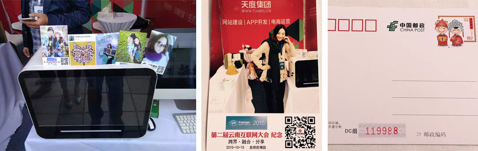 天度集團作為云南本土很大的互聯(lián)網服務企業(yè),在本次參展中,向業(yè)界展示了“互聯(lián)網+”系列服務及產品,并聯(lián)合云南省郵政局展示了“互聯(lián)網+郵政”的系列應用。在本次大會中,天度集團參展展位為大會嘉賓免費提供了“第二屆云南省互聯(lián)網大會紀念”個性化明信片打印,并取得廣泛關注和好評。