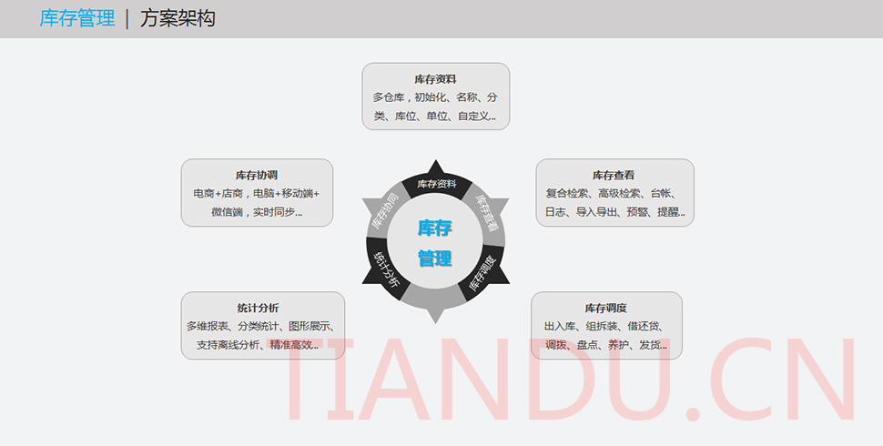 天度電商及零售業(yè)管理解決方案的設(shè)計(jì)核心是全程管理,即一套軟件解決所有管理問題、一個(gè)平臺兼容所有數(shù)據(jù)、一次錄入實(shí)現(xiàn)應(yīng)用,從軟件的功能組成、技術(shù)兼容、系統(tǒng)關(guān)聯(lián)等方面建立的管理體系,避免多套系統(tǒng)切換、多套軟件并行、多次數(shù)據(jù)錄入的繁瑣操作,幫助企業(yè)實(shí)現(xiàn)線上+線下、內(nèi)部+外部、集團(tuán)+分部業(yè)務(wù)集中管控,系統(tǒng)互聯(lián)互通,信息共享協(xié)同,滿足行業(yè)和企業(yè)不斷發(fā)展變化中對核心業(yè)務(wù)的管理需求。
