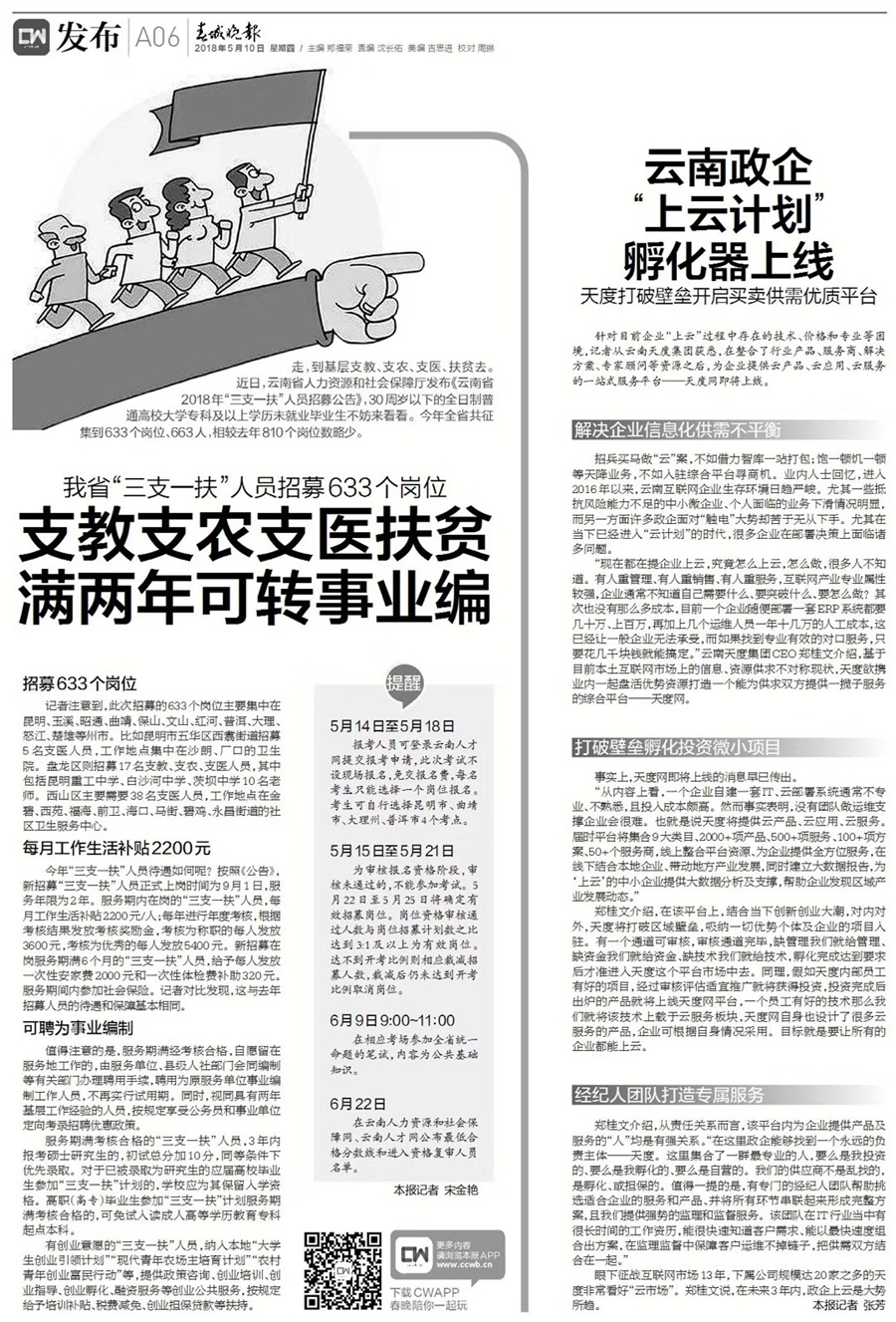 《春城晚報(bào)》關(guān)于天度提名為“一站式商業(yè)服務(wù)云平臺(tái)”的報(bào)道