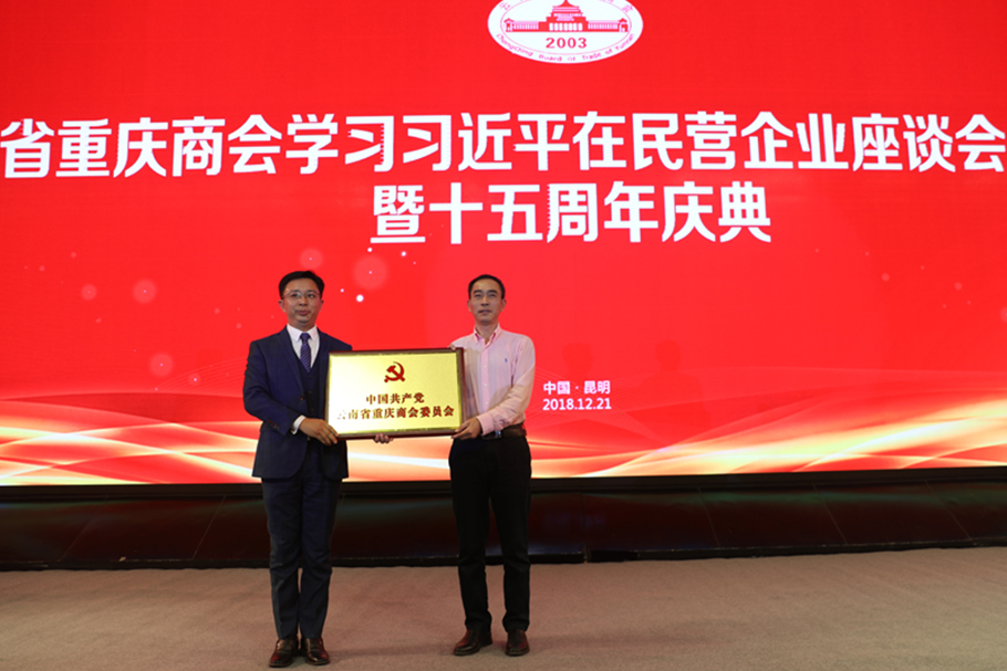 云南省工商聯(lián)黨組成員、副主席夏云東同志在會(huì)上宣讀了《關(guān)于批準(zhǔn)成立中國(guó)共產(chǎn)黨云南省重慶商會(huì)委員會(huì)的批復(fù)》,并向云南省重慶商會(huì)首任黨委書記高柱明同志授牌。