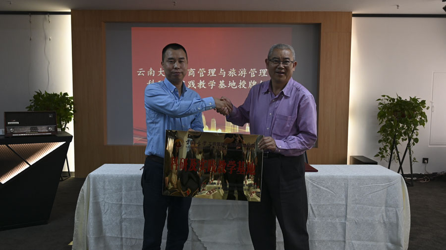 為深入推進校企合作協(xié)議,云南大學商旅學院副院長姚建文為云南天度集團授予了“云南大學科研及實踐教學基地”牌匾,雙方將以此為契機,共同譜寫校企合作的新篇章。