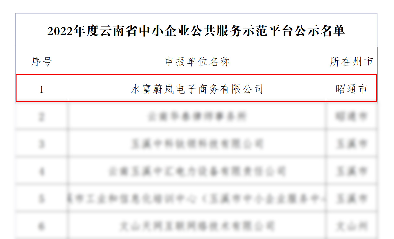 水富蔚嵐電子商務有限公司獲“省級中小企業(yè)公共服務示范平臺”認定