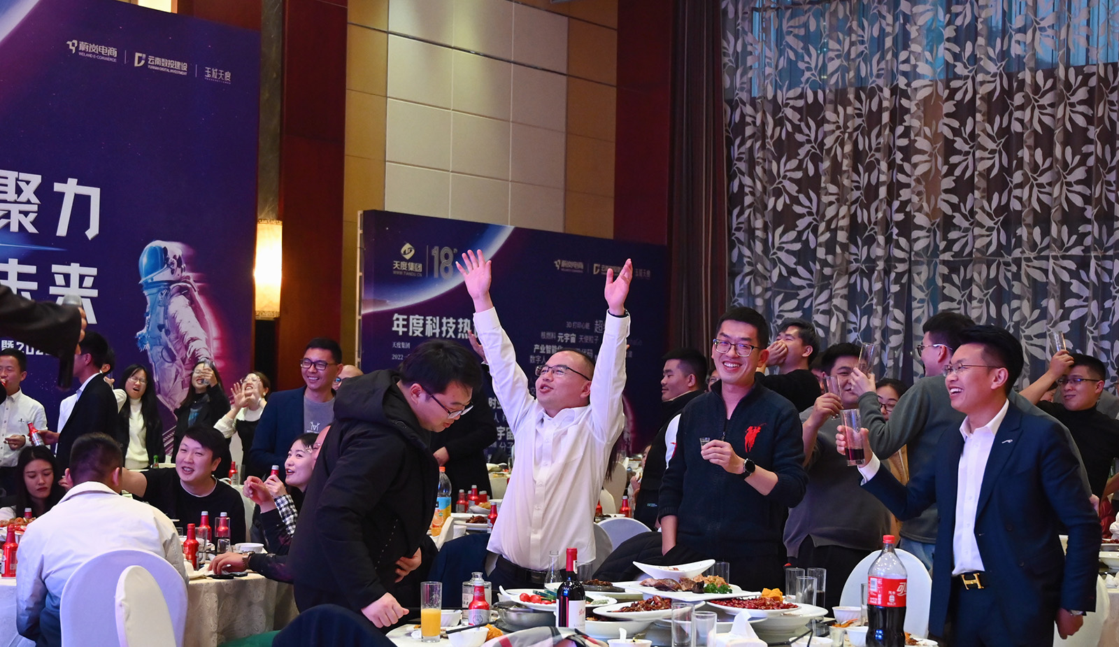 為感謝所有員工一年來的辛苦付出,天度年會還設(shè)置了豐富的抽獎獎勵,會上集團(tuán)與各個公司領(lǐng)導(dǎo)邊為大家送新年寄語,邊抽取新年獎勵。 年會上抽取特等獎到三等獎共計16名幸運(yùn)兒,大屏上人像不停翻滾,底下員工群情激奮,紛紛盼望著中獎,隨著抽獎人數(shù)的減少,大家的情緒愈發(fā)高漲,平時工作中嚴(yán)肅認(rèn)真的領(lǐng)導(dǎo)此刻也跟隨氛圍,在舞臺上以酒助興,整個年會的氛圍都極為放松與自由。