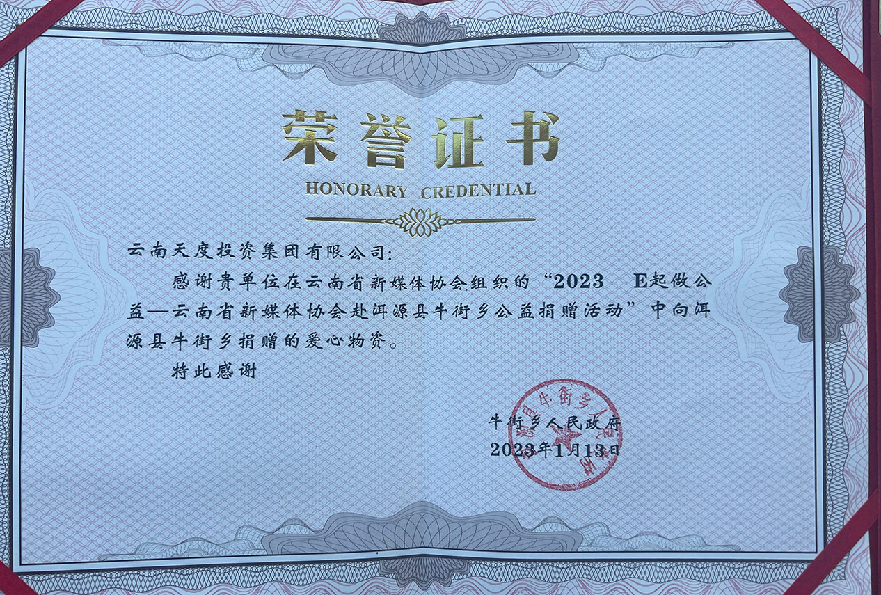 云南天度投資集團有限公司積極協(xié)調、組織、參加本次活動并進行物資捐贈。
