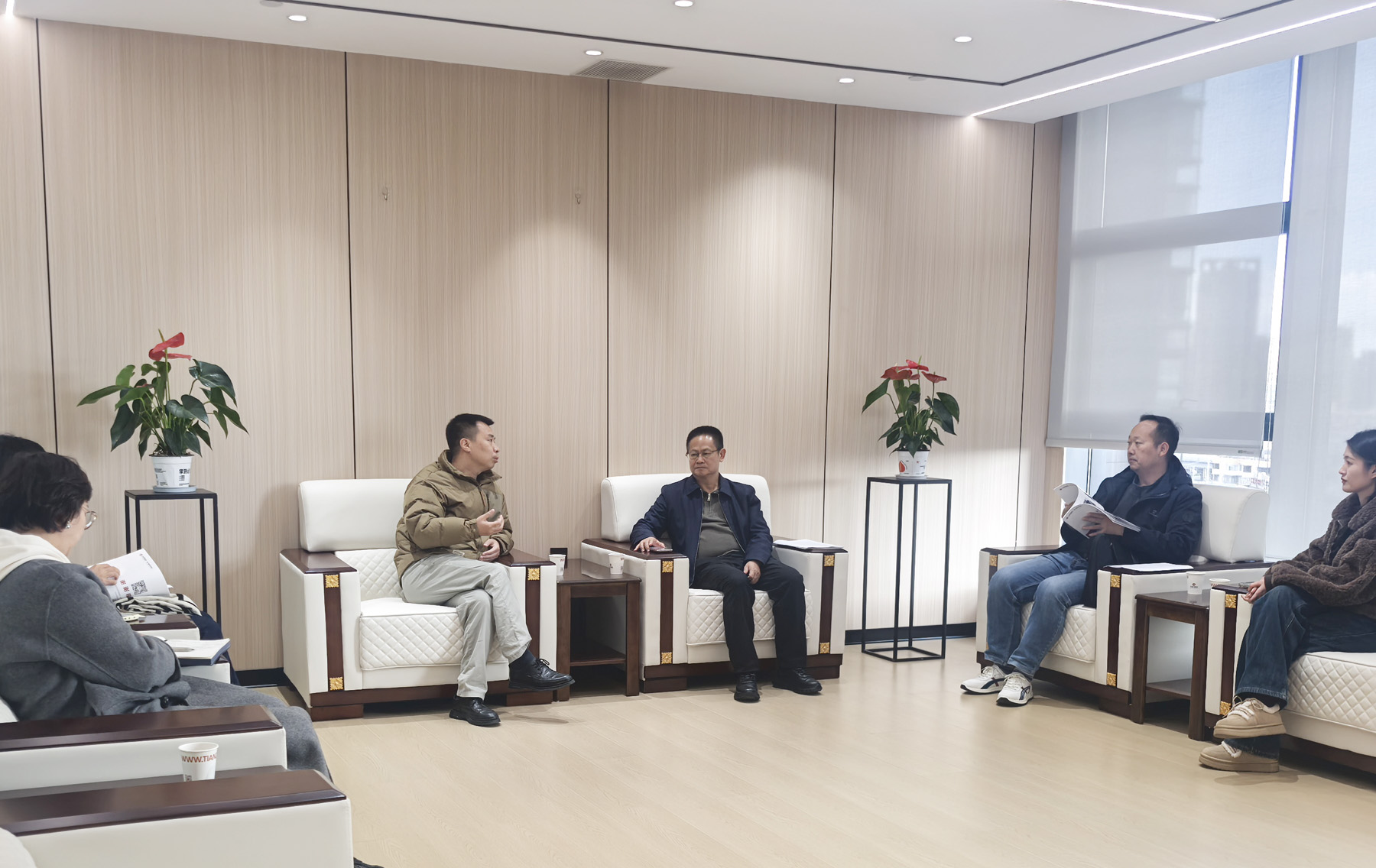 王若舟書記在聽取介紹后,對(duì)天度集團(tuán)二十年來(lái)取得的發(fā)展成就表示贊賞。他表示,天度集團(tuán)在產(chǎn)業(yè)數(shù)字化領(lǐng)域的深耕實(shí)踐與院校的人才培養(yǎng)方向高度契合,希望雙方能夠在學(xué)生實(shí)習(xí)就業(yè)、共建產(chǎn)業(yè)學(xué)院、引產(chǎn)入校共建園區(qū)等領(lǐng)域加強(qiáng)溝通與合作,共同探索產(chǎn)教融合新模式。