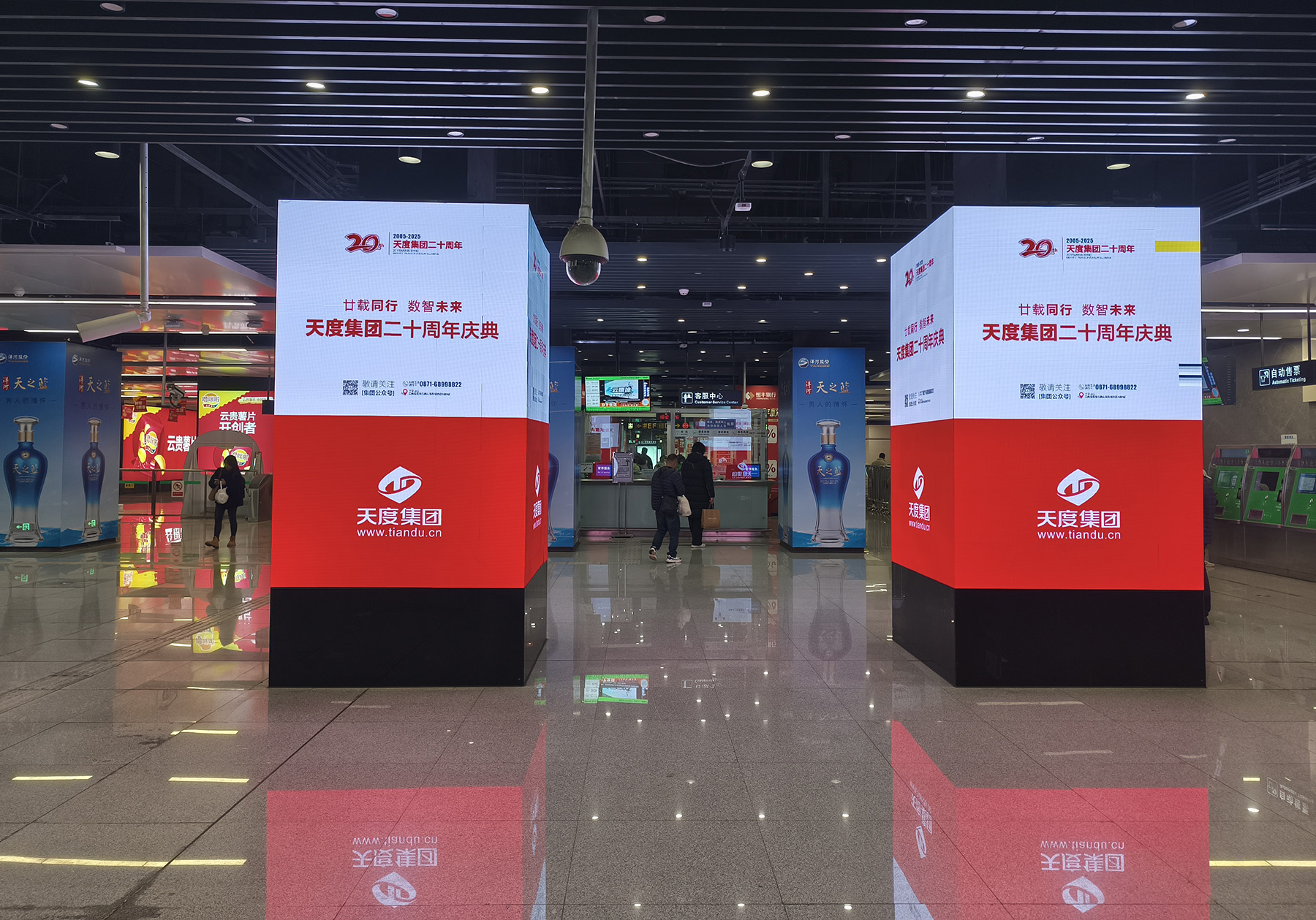 慶典啟幕前,天度集團(tuán)20周年慶典宣傳已點(diǎn)亮昆明全城。從市中心到各區(qū)域地標(biāo),再到昆明地鐵廣告,十余塊LED大屏同步綻放,將慶典的喜悅傳遞到城市的每個角落,讓所有關(guān)心支持天度的朋友們共同見證這一重要時刻。