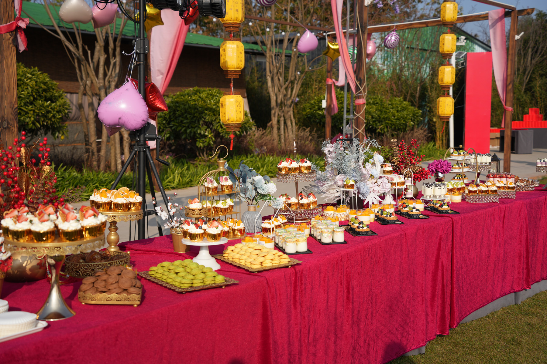下午四點(diǎn),典雅別致的簽到區(qū)迎來首批嘉賓。大家用金色簽字筆在主題背景板上留下珍貴簽名,定格這份特殊的紀(jì)念?,F(xiàn)場(chǎng),悠揚(yáng)的爵士樂緩緩流淌,精致茶歇暖胃更暖心,燒烤區(qū)飄來的香氣早已勾起無限期待。笑語寒暄中,是同行多年的默契,也是共赴未來的信心。