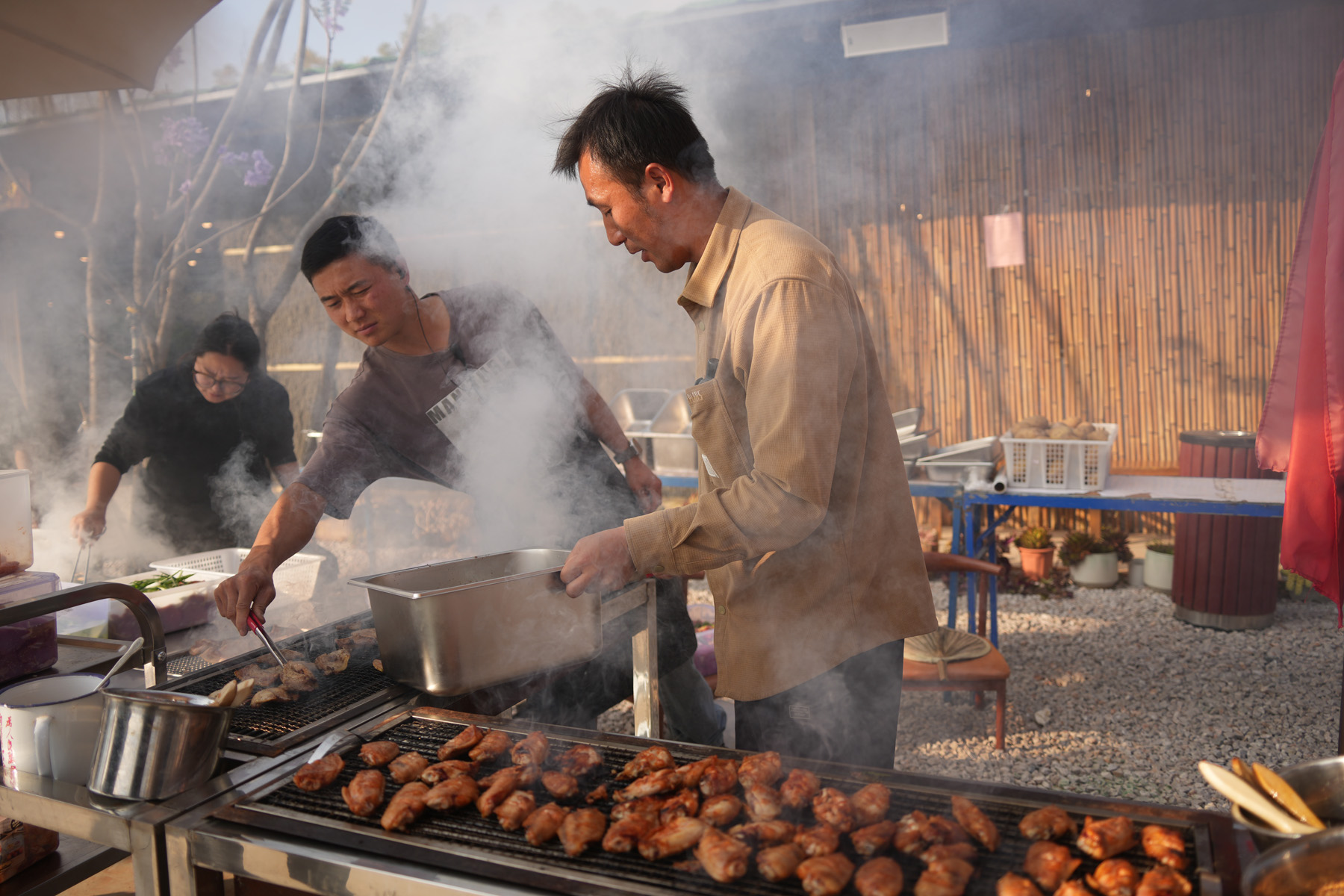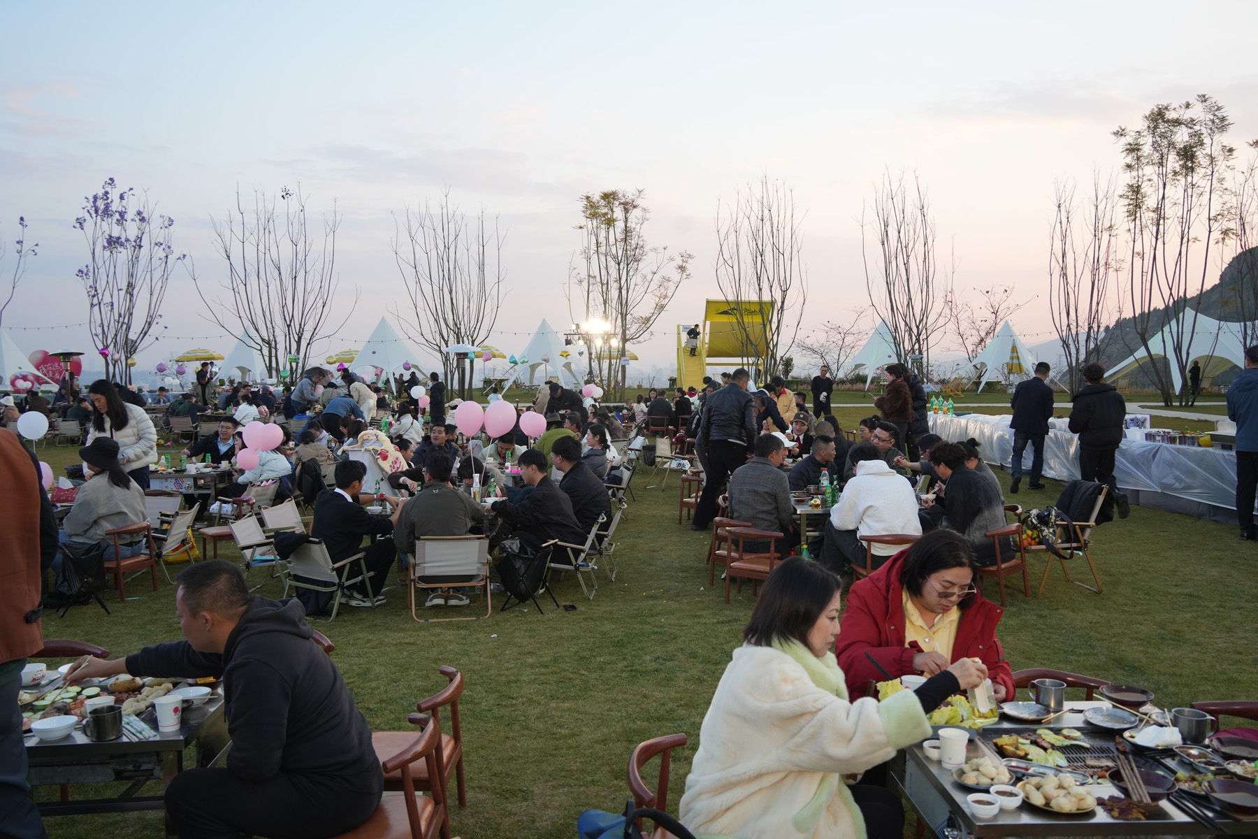 儀式過后,露天燒烤晚宴火熱開啟!美食美酒,暢敘情誼,大家盡情享受這場(chǎng)味覺盛宴。樂隊(duì)也從暖場(chǎng)伴奏轉(zhuǎn)為激情Live秀,《海闊天空》《追夢(mèng)赤子心》等經(jīng)典旋律引發(fā)全場(chǎng)共鳴,點(diǎn)歌環(huán)節(jié)更讓現(xiàn)場(chǎng)成為歡樂的海洋。