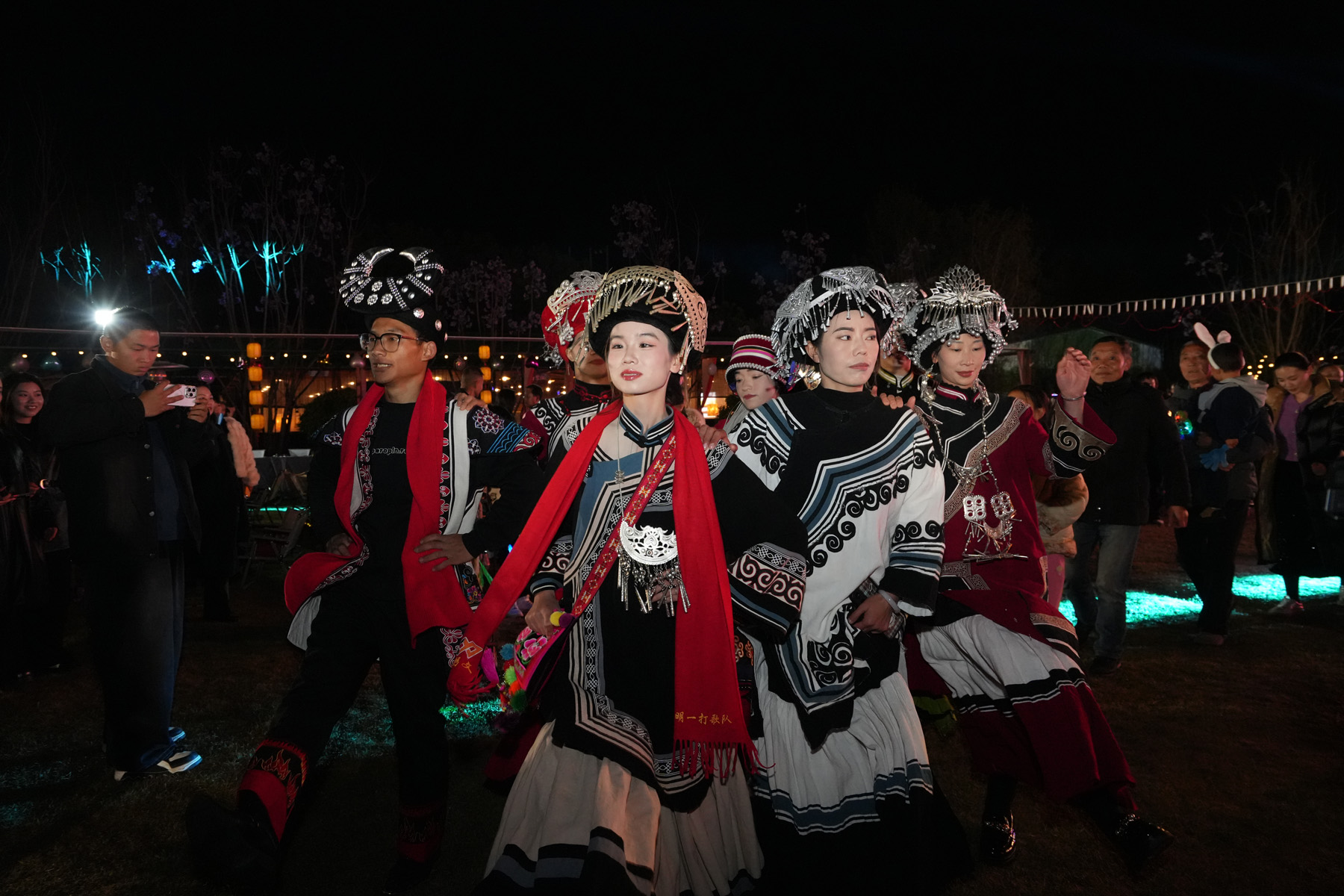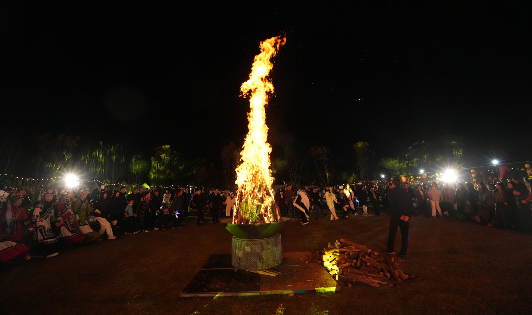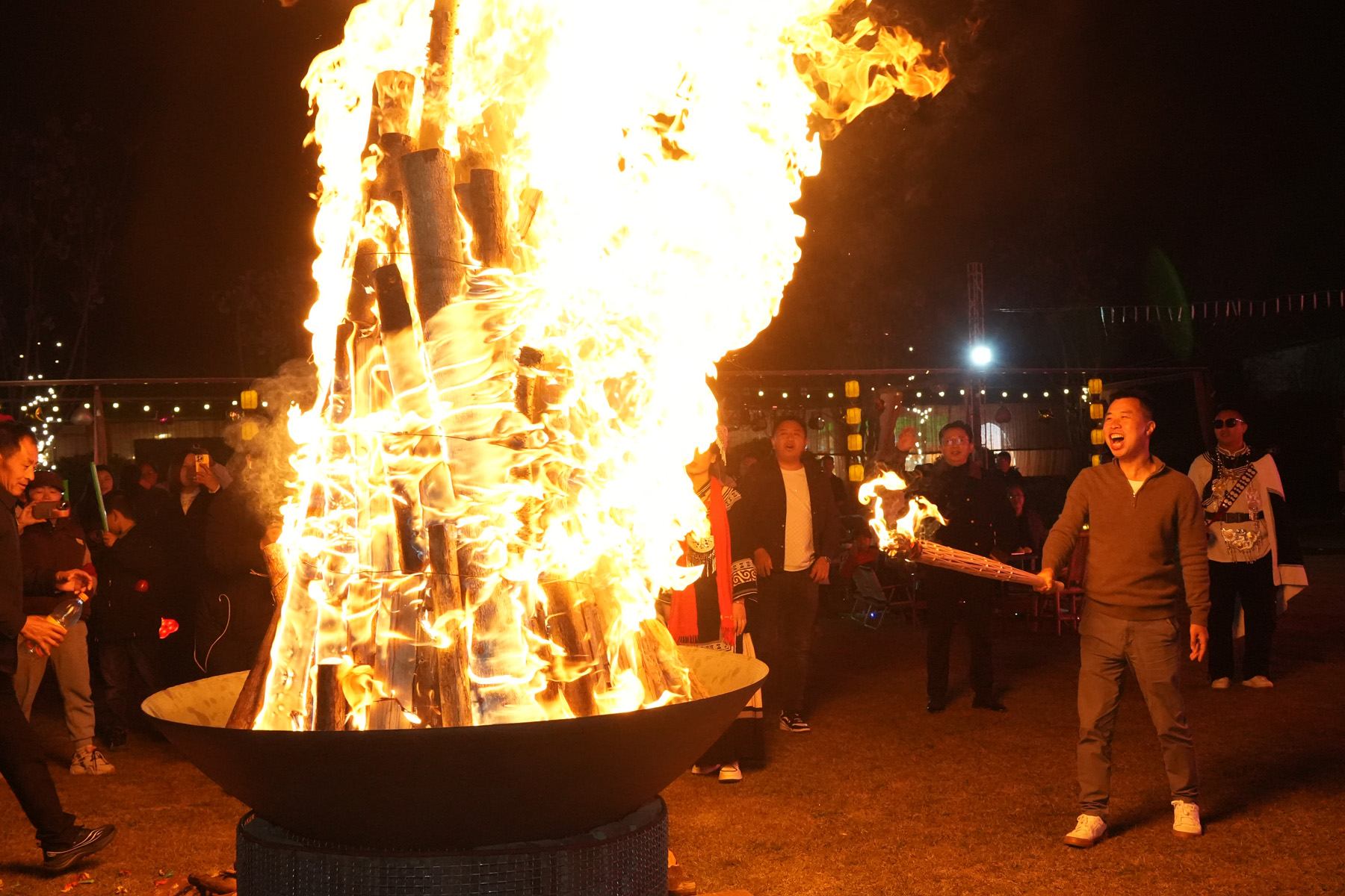 傍晚六點(diǎn)半,在眾人期盼中,集團(tuán)創(chuàng)始人鄭桂文先生手持火炬,莊嚴(yán)點(diǎn)燃中央主篝火?;鹧嫔v的剎那,溫暖與光明映照每一張笑臉,象征天度人凝心聚力、薪火相傳的奮斗精神。 篝火既燃,熱情引爆!在專業(yè)打跳團(tuán)隊(duì)的帶領(lǐng)下,所有人手拉手,圍著熊熊篝火,跳起歡快的民族打跳。歌聲、笑聲、腳步聲交織成歡樂的樂章,現(xiàn)場(chǎng)化作一片沸騰的海洋。