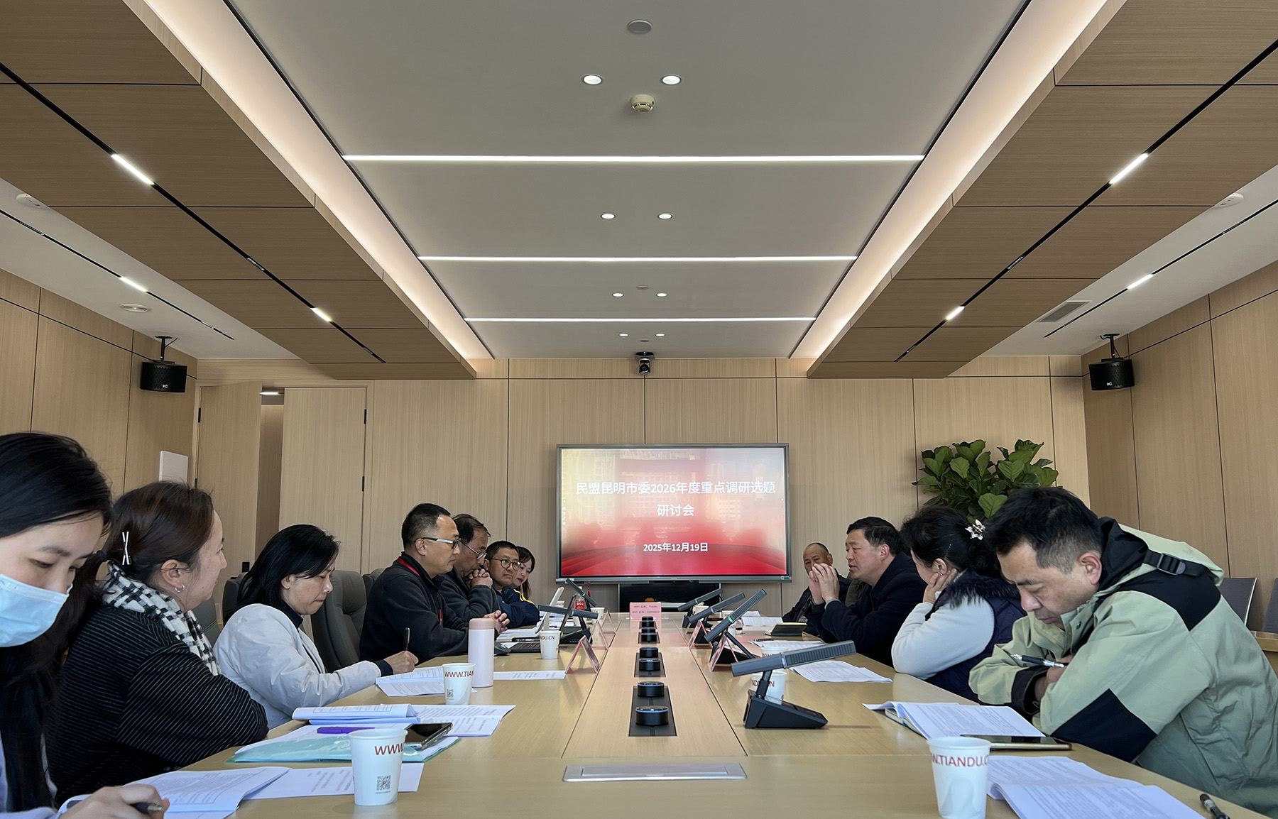 月19日,昆明市政協(xié)副主席、民盟昆明市委會(huì)主委吳波主持召開2026年度盟市委重點(diǎn)調(diào)研選題工作研討會(huì),總結(jié)2025年度參政議政工作,謀劃籌備2026年度重點(diǎn)調(diào)研選題,為議政建言奠定基礎(chǔ)。